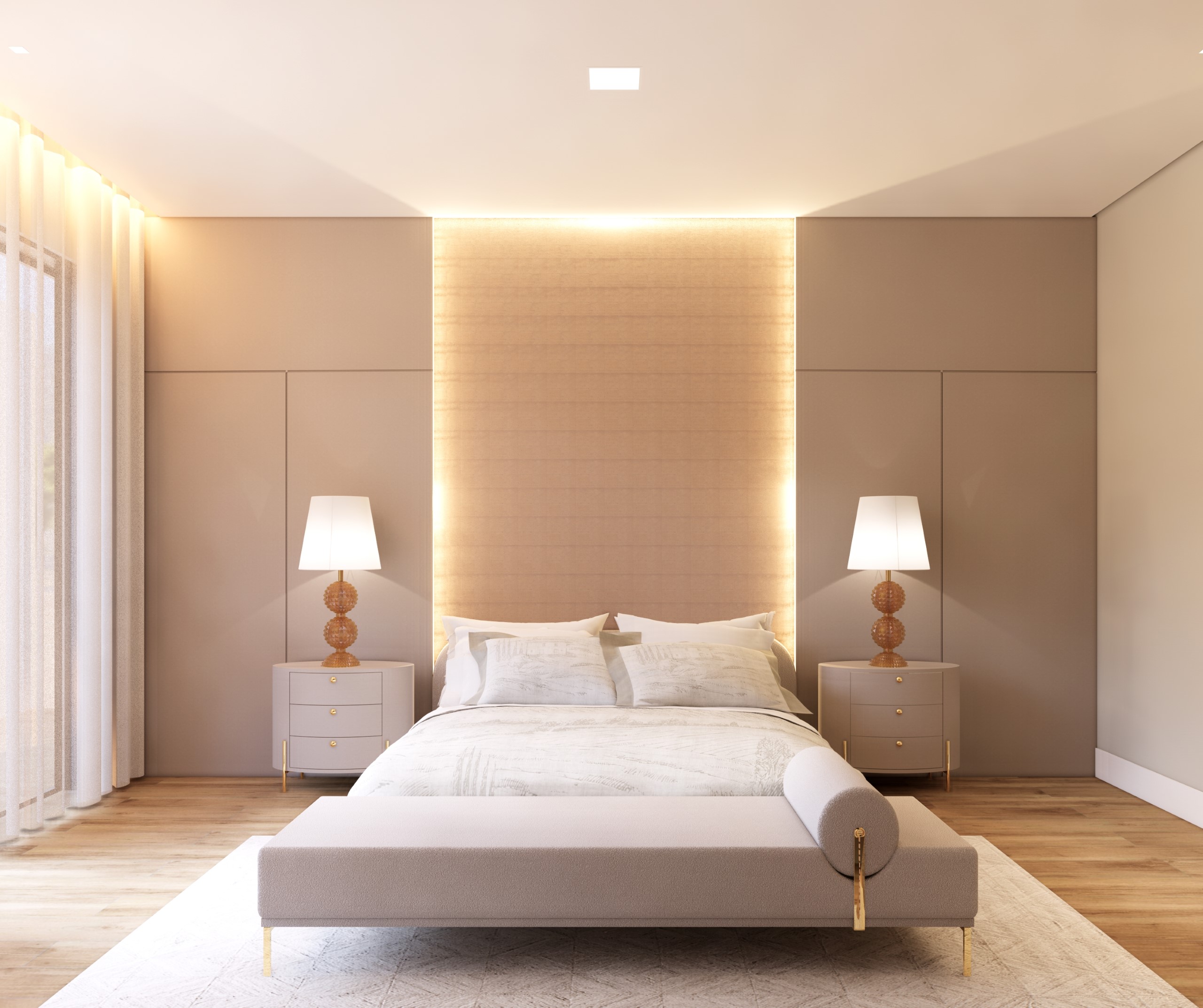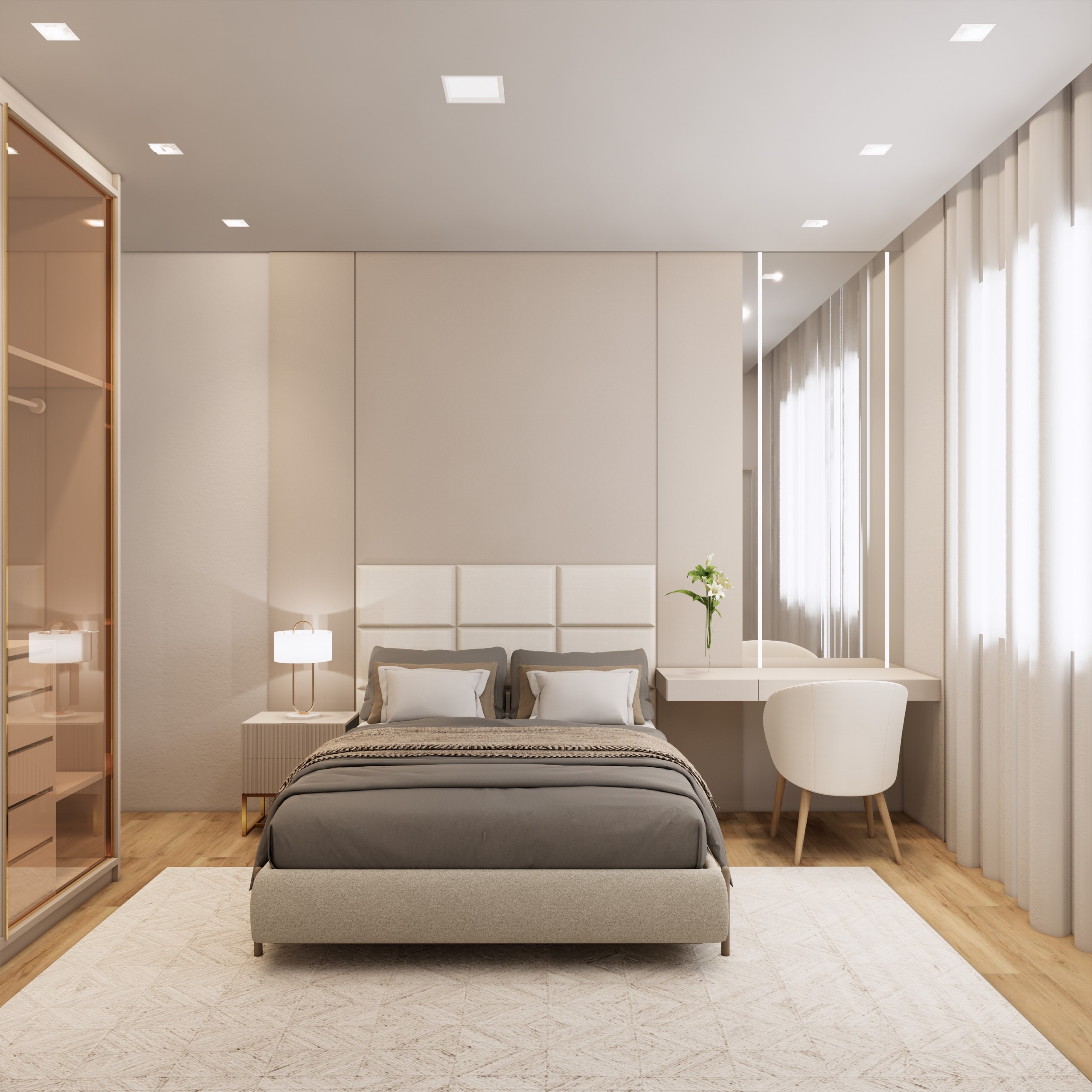 Suíte com espaçoso closet, banheira de imersão e vista da lagoa